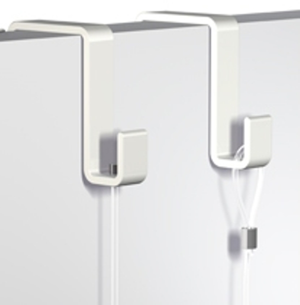 Messekrog i hvid fra Artiteq. Kan bruges direkte på messevægge med en nylonline med 6 kantshoved eller løkke.