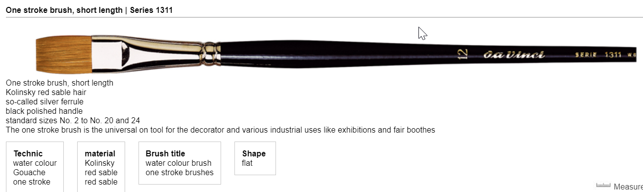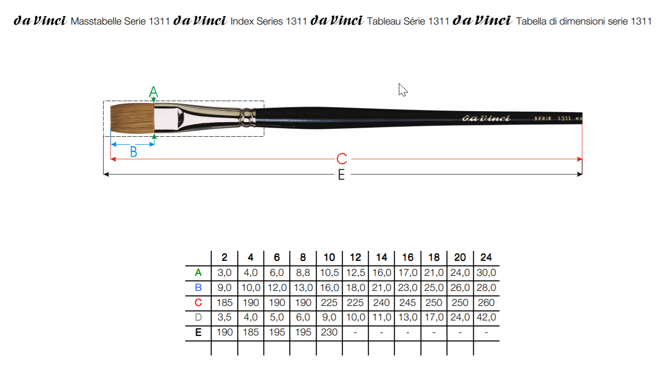 Kolinsky Red Sable fra da vinci er en ægte mårhårspensel. Denne pensel er flad.