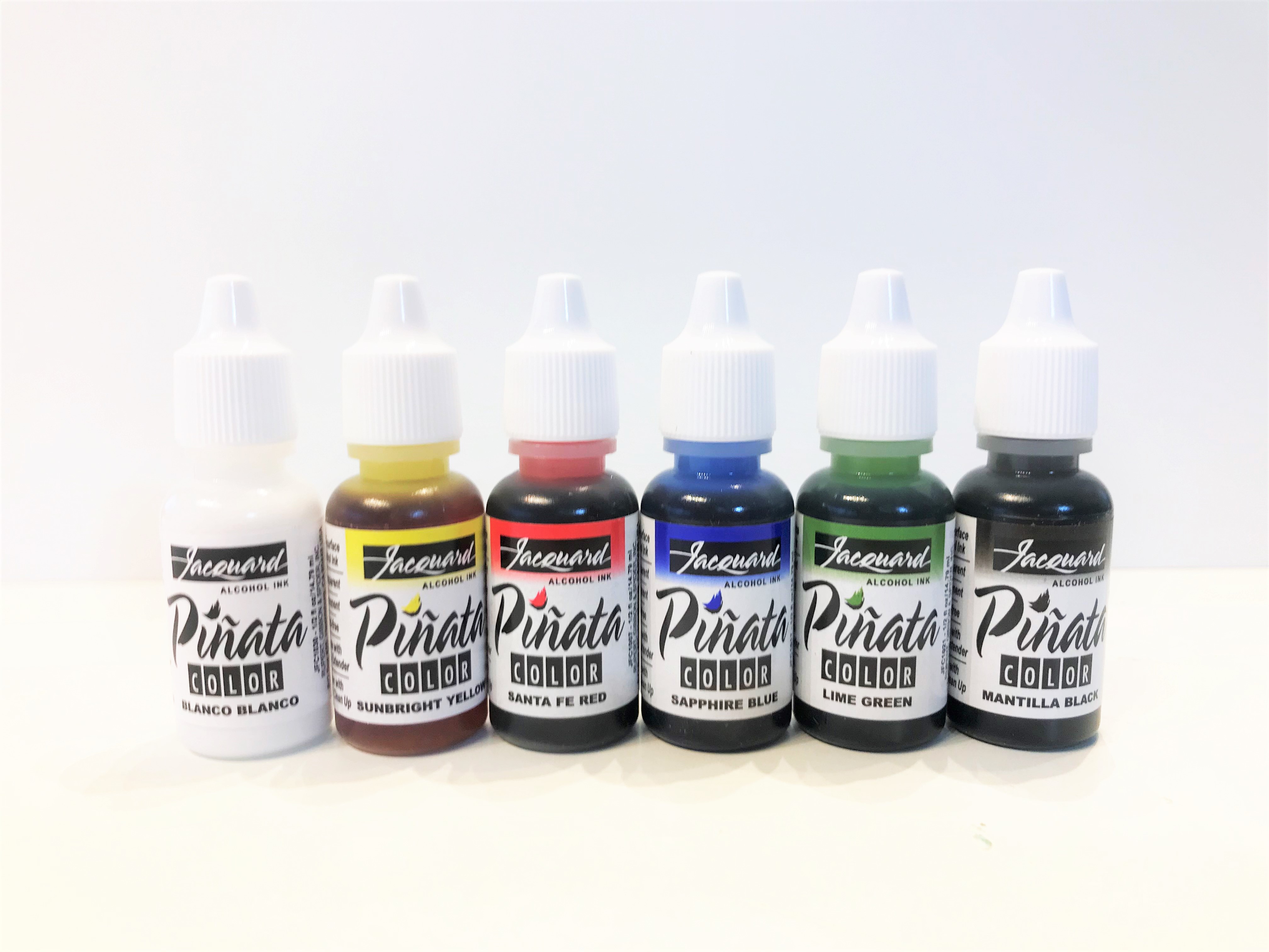- 7 Pinata alcohol ink, White, Black, GoldenYellow, Senorita Magenta, Saphire Blue, Rainforrest Green, Rich Gold.