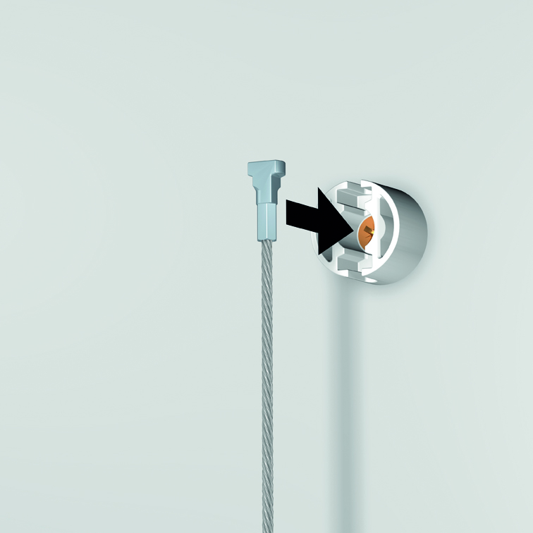 Den kan ophænges seperat på væggen eller ophænges i en galleriskinne. Dette betyder, at hvis du allerede har en skinne, behøver du ikke at bore yderligere i væggen.