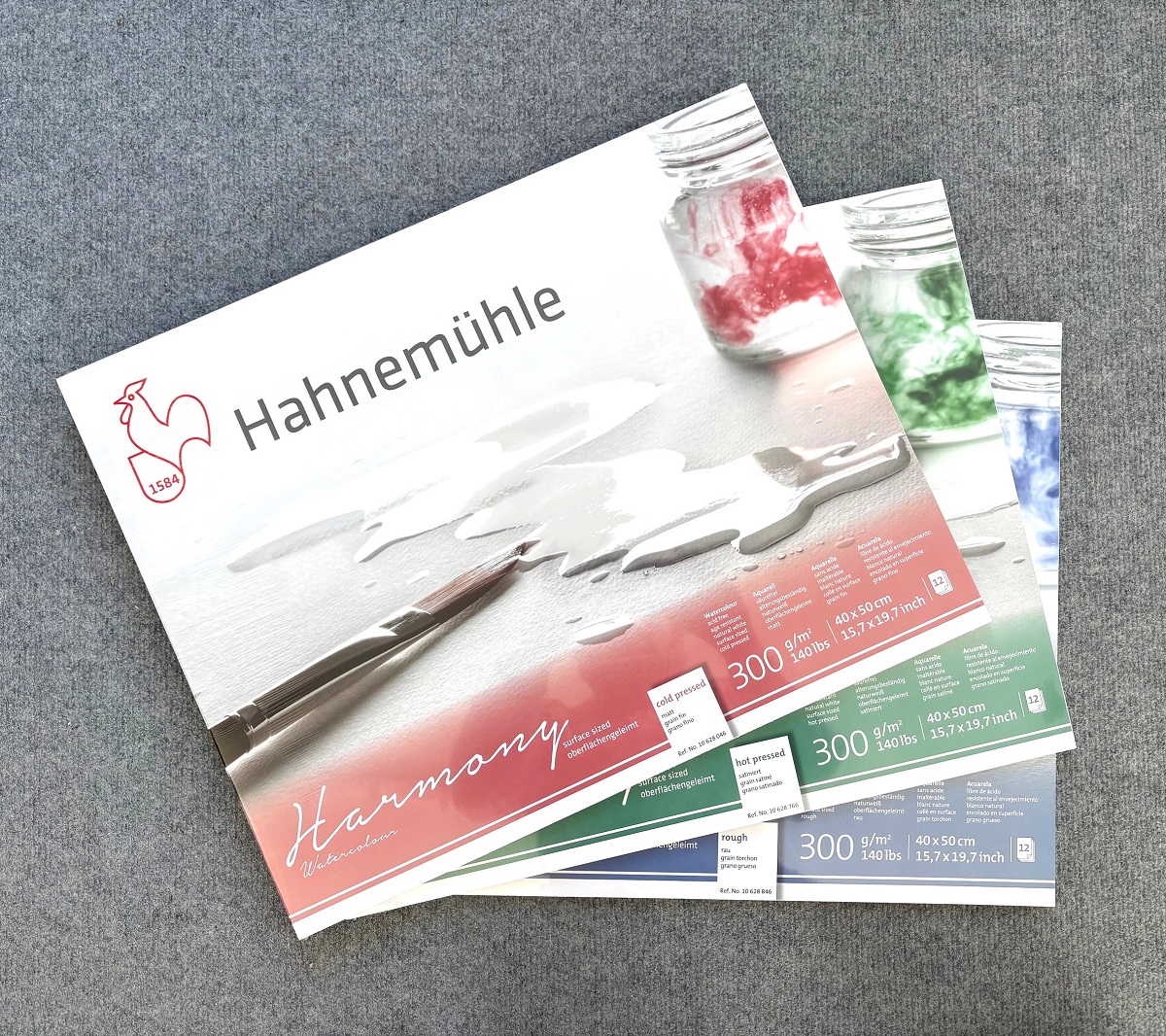 Harmony akvarelpapir, cold pressed, hot pressed eller rough fra Hahnemühle er et syrefrit, naturlig hvidt, 300g papir. Du får meget for pengene.